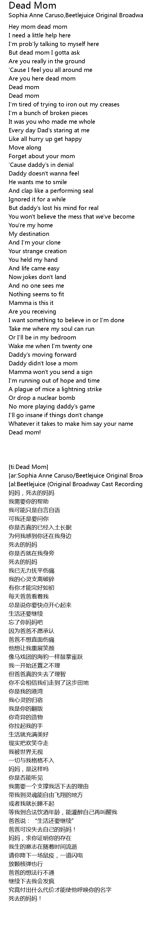But dead mom I gotta ask |