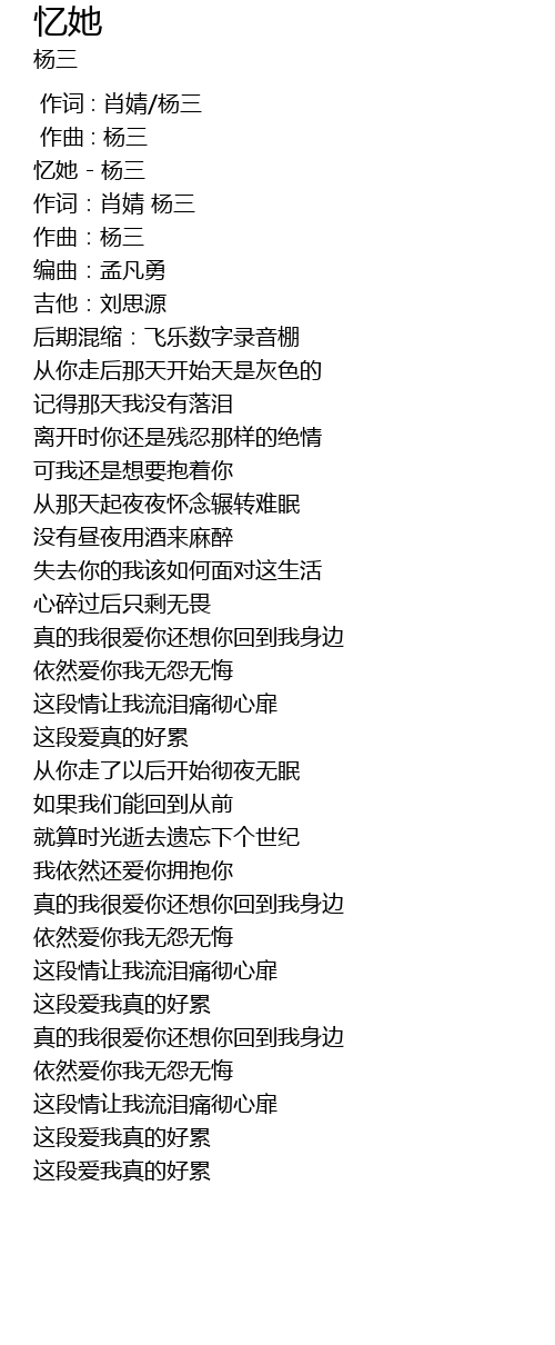 | [00:02.178] | 忆她 - 杨三 |