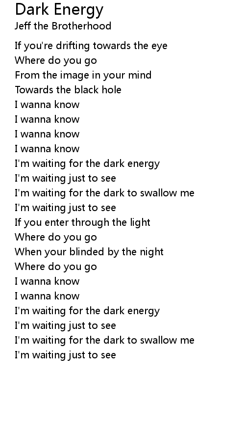 I'm waiting for the dark energy |