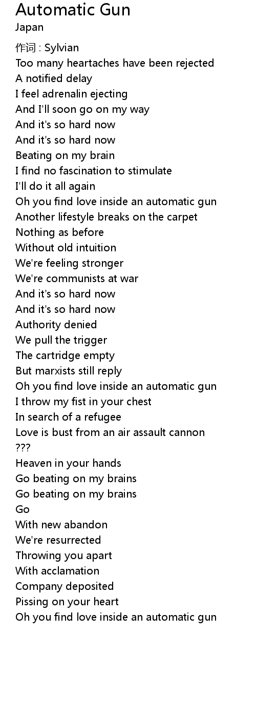 | Oh you find love inside an automatic gun | |
