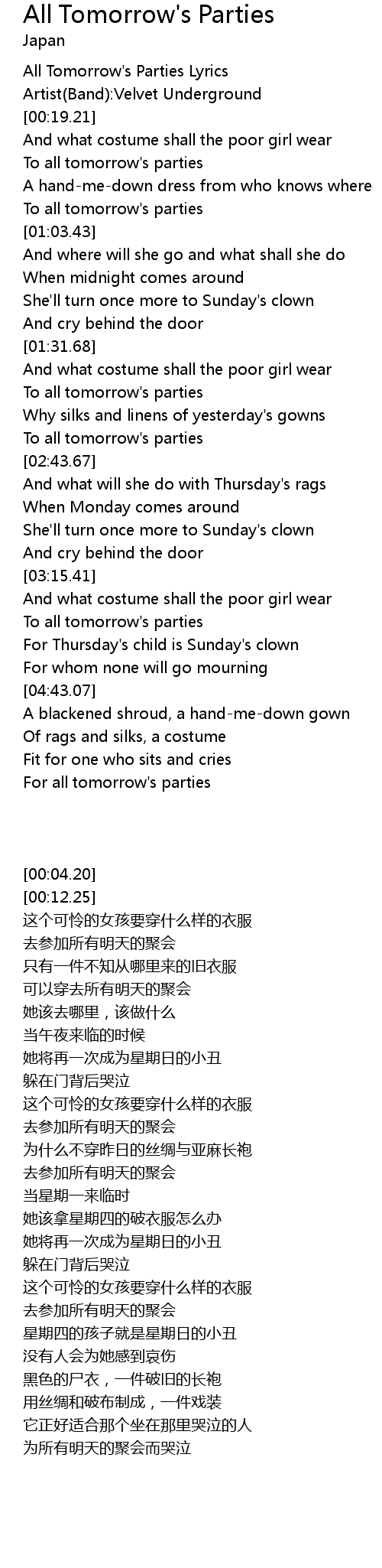 All Tomorrow's Parties Lyrics |