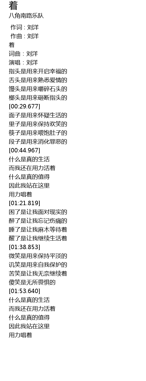 | [01:38.352] | xing le shi rang wo ji xu sheng huo zhe |