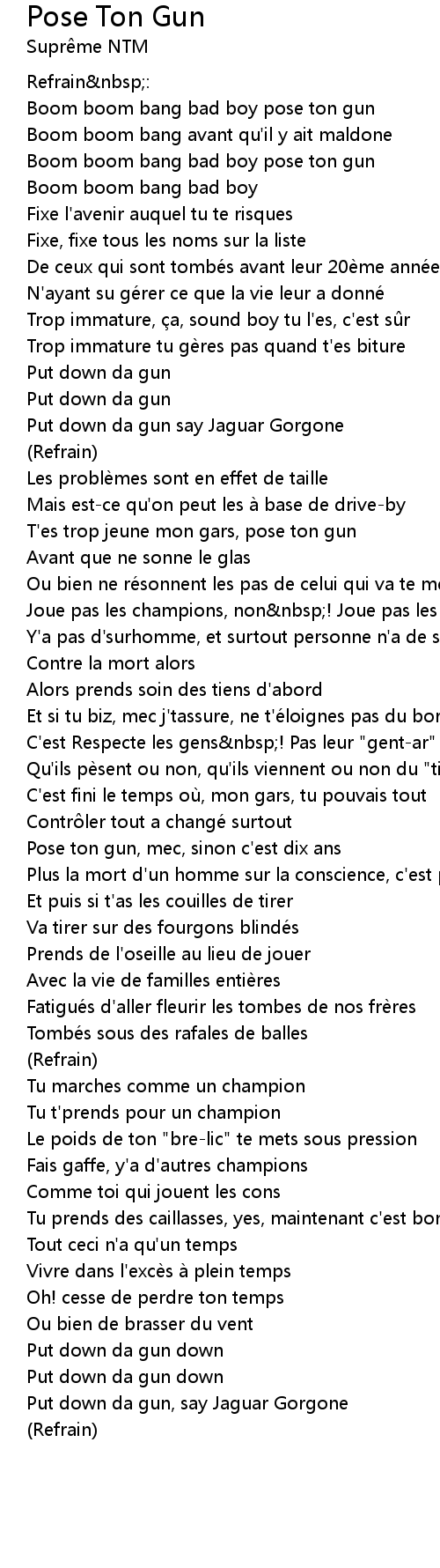 | 歌曲 | Pose Ton Gun |
