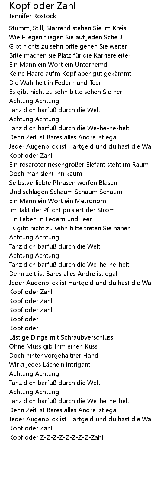 | Tanz dich barfuß durch die We-he-he-helt | |