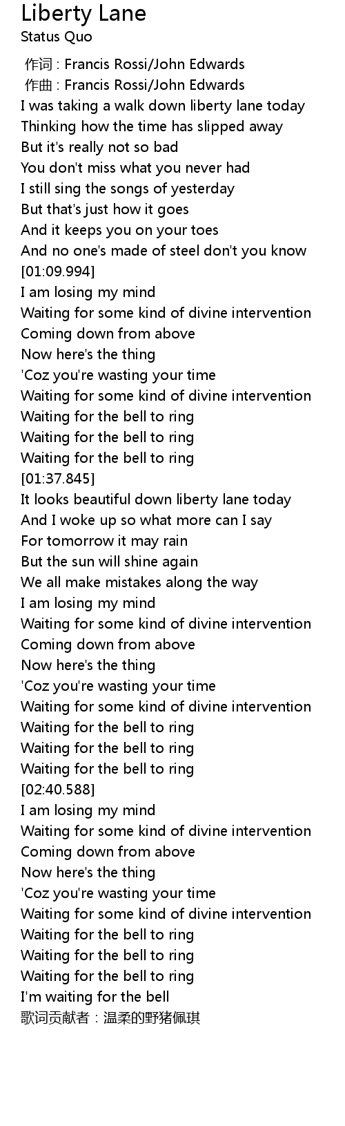 | [00:00.000] | zuo ci : Francis Rossi John Edwards |