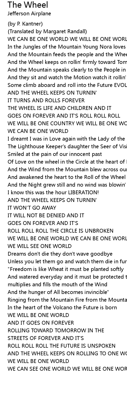 And the Mountain feeds the people and the Wheel keeps on turnin' REVOLUTION! |