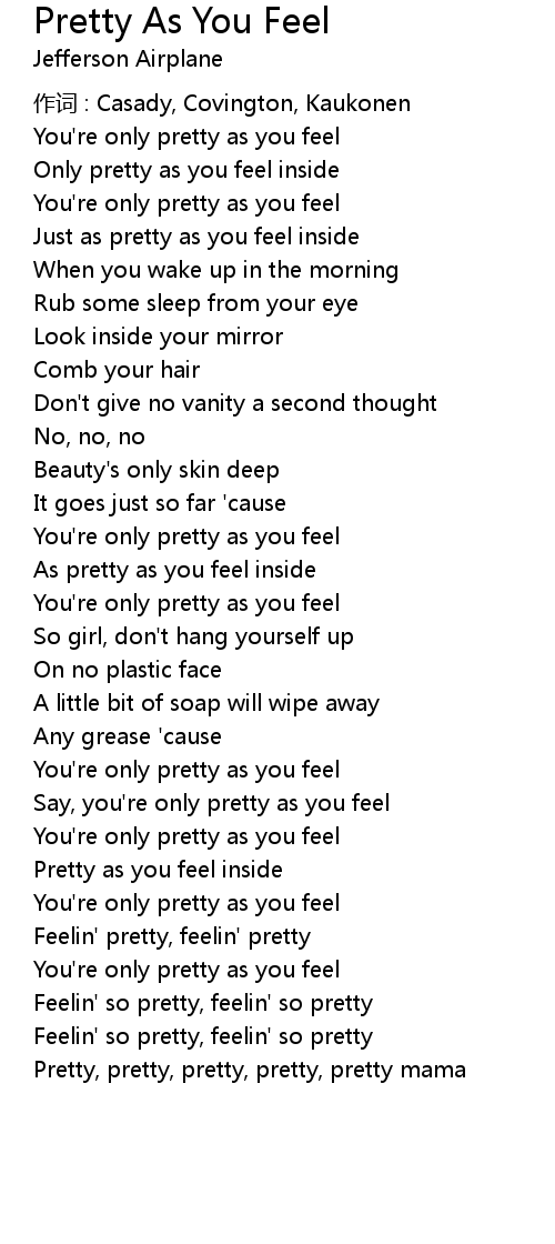 | Say, you' re only pretty as you feel | |