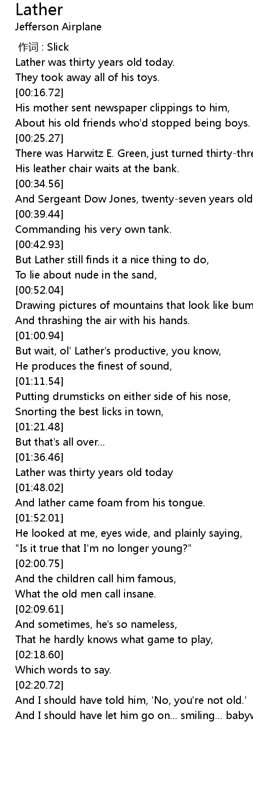 | [01:44.96] | Lather was thirty years old today |