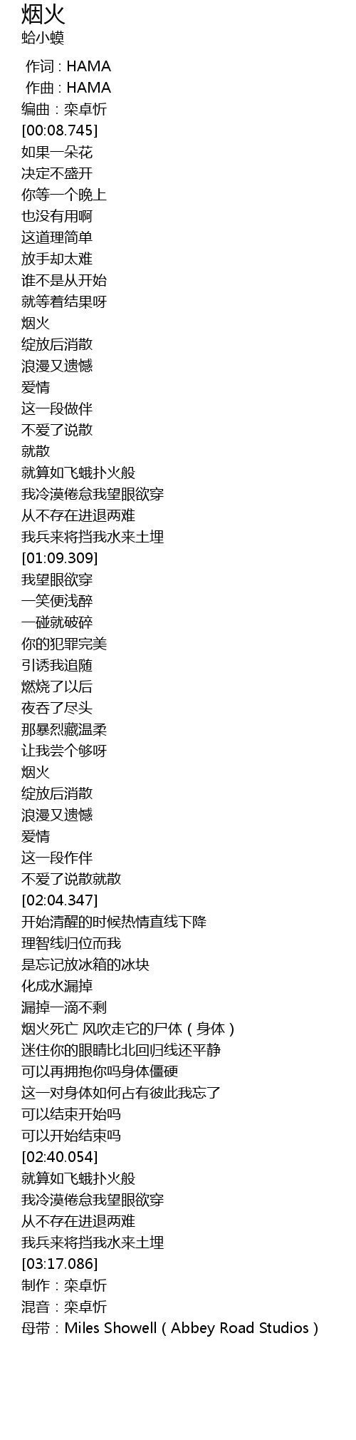 | [00:32.137] | 烟火 |