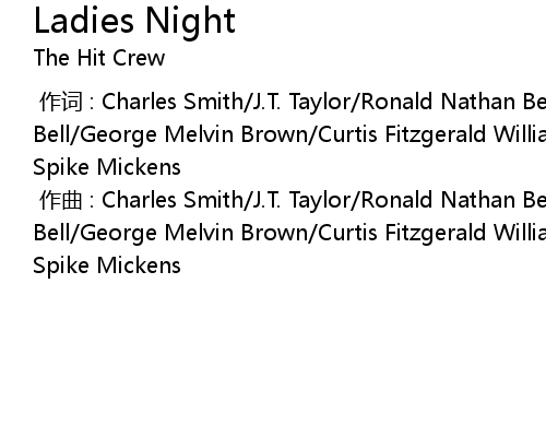 | [00:00.000] | zuo qu : Charles Smith J. T. Taylor Ronald Nathan Bell Robert Bell George Melvin Brown Curtis Fitzgerald Williams Dennis Ronald Thomas Robert Spike Mickens |
