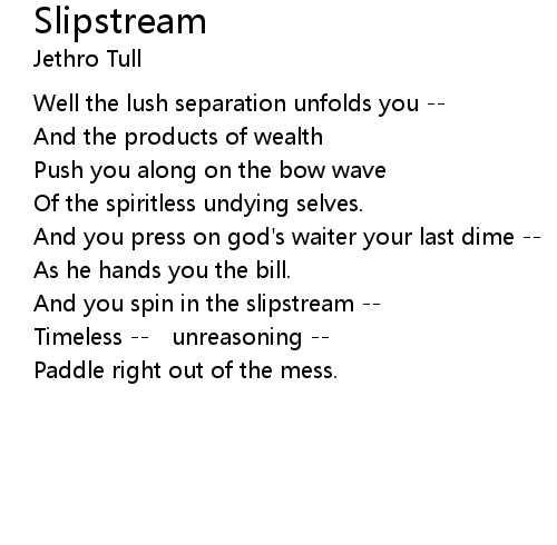 | And you spin in the slipstream | |