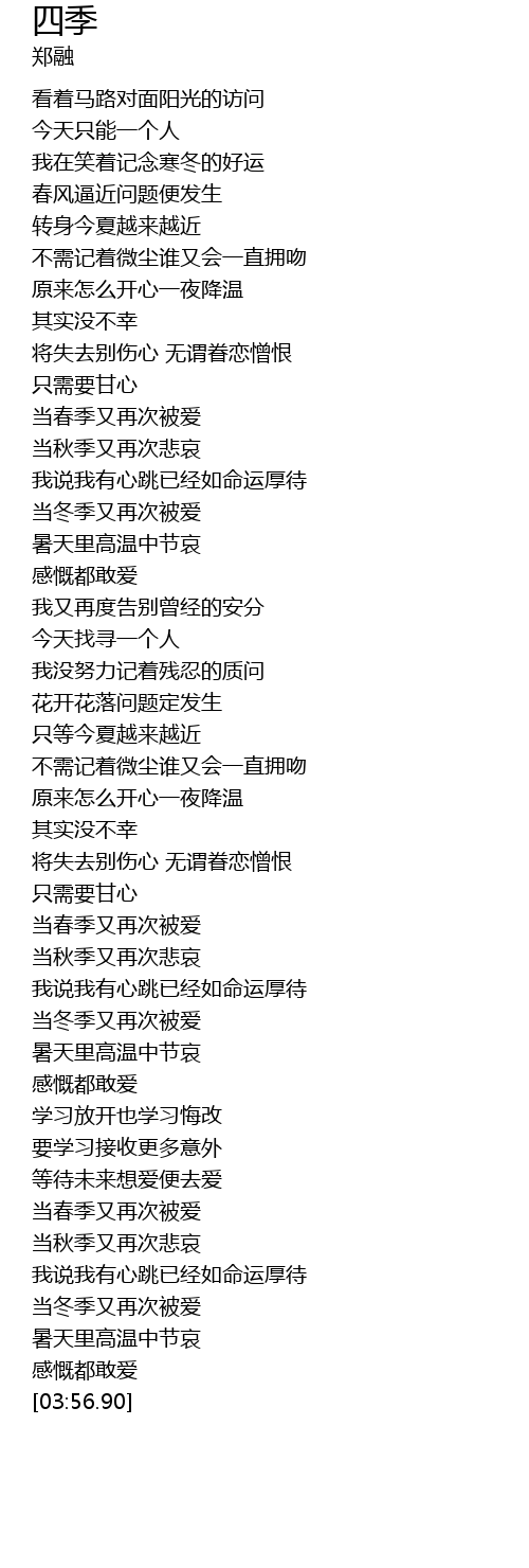 | [03:48.42] | 暑天里高温中节哀 |