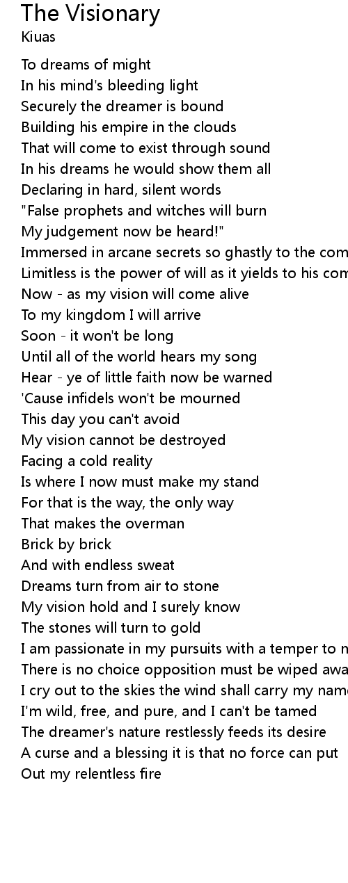 Now - as my vision will come alive |