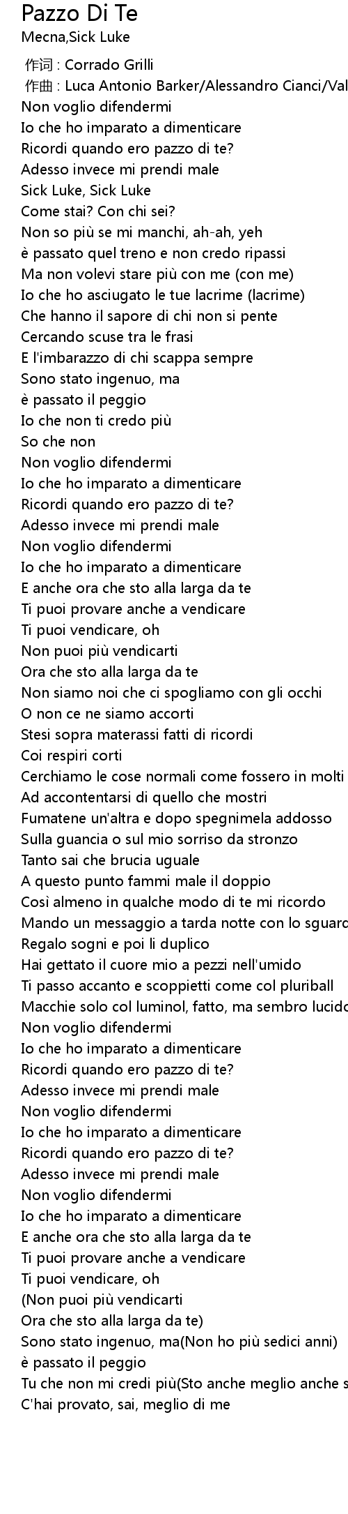 | [02:14.37] | Ricordi quando ero pazzo di te? |