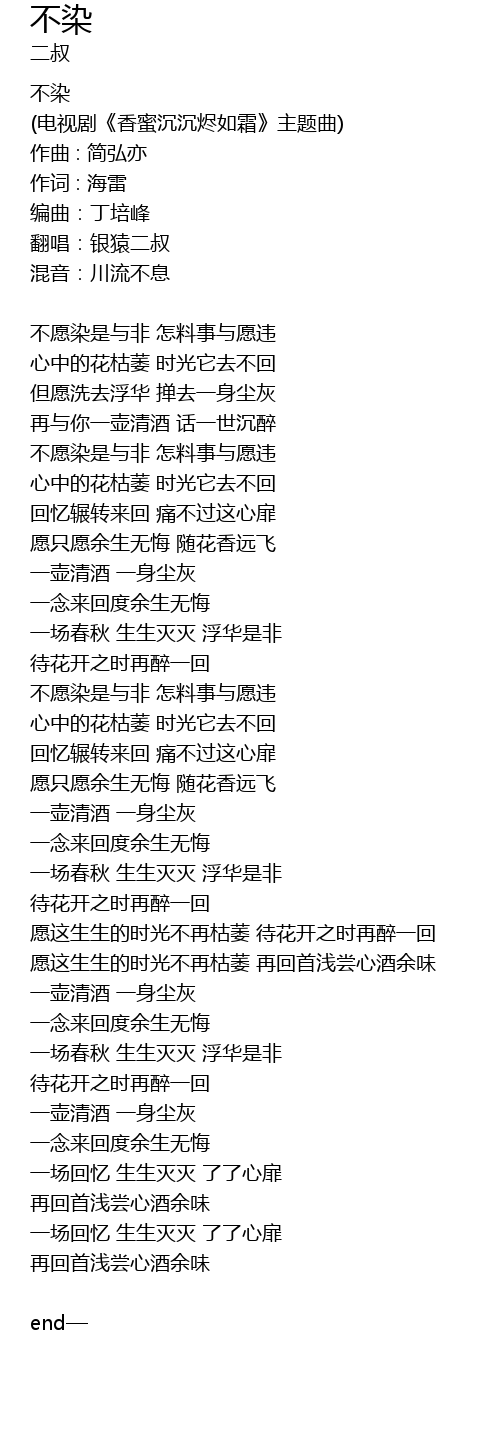 | 专辑 | 【不染是与非,下辈子在会】 |