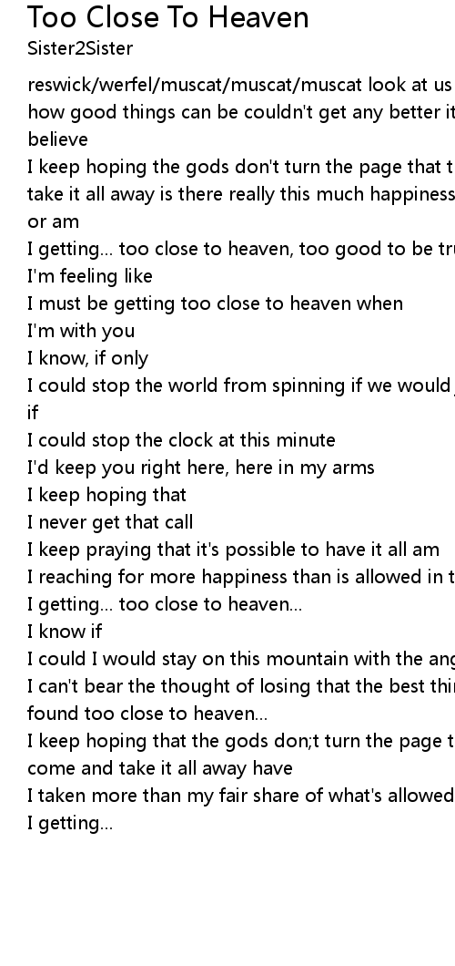 I can't bear the thought of losing that the best thing that my heart has ever found too close to heaven... |