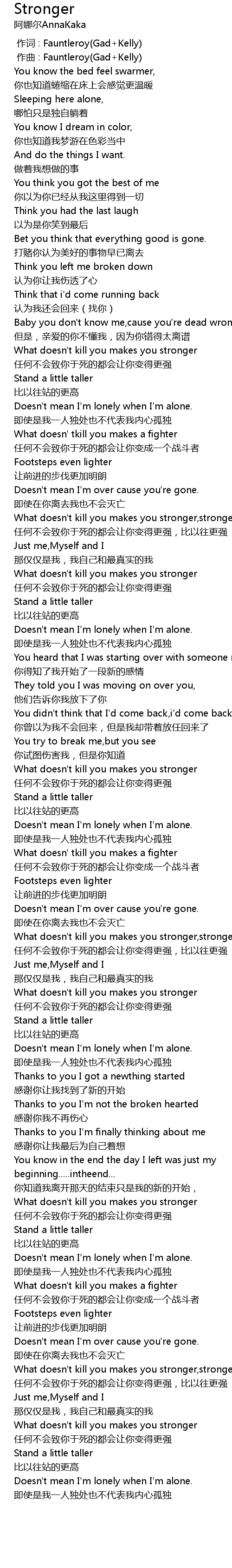 | [00:58.664] | What doesn't kill you makes you stronger,stronger |