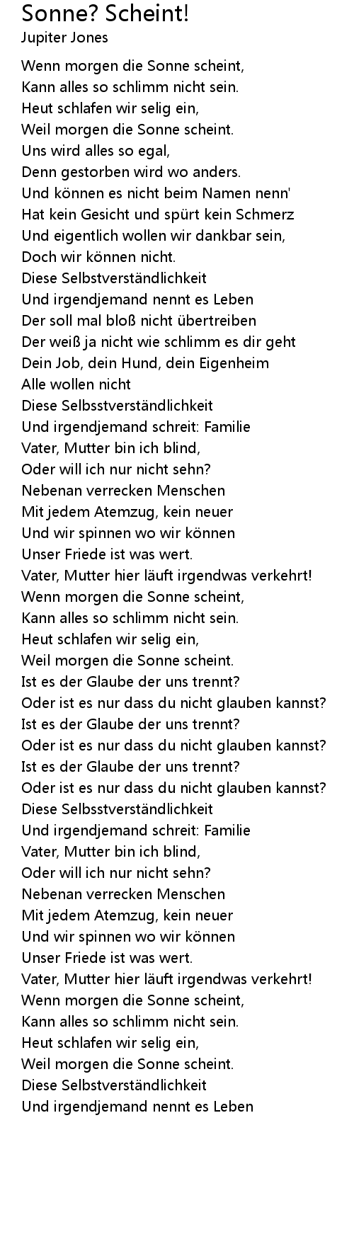 | 歌曲 | Sonne? Scheint! |