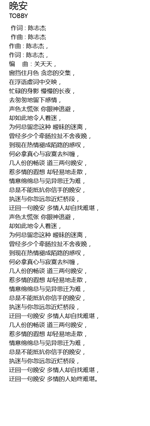 | [04:03.625] | 迂回一句晚安 多情人却自找难堪, |