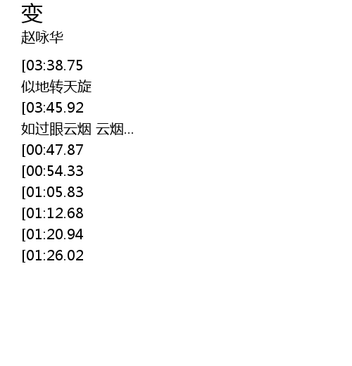 | [04:03.74][03:45.92][02:02.41][01:44.92][00:19.37] | 当意念改变 如过眼云烟 云烟... |