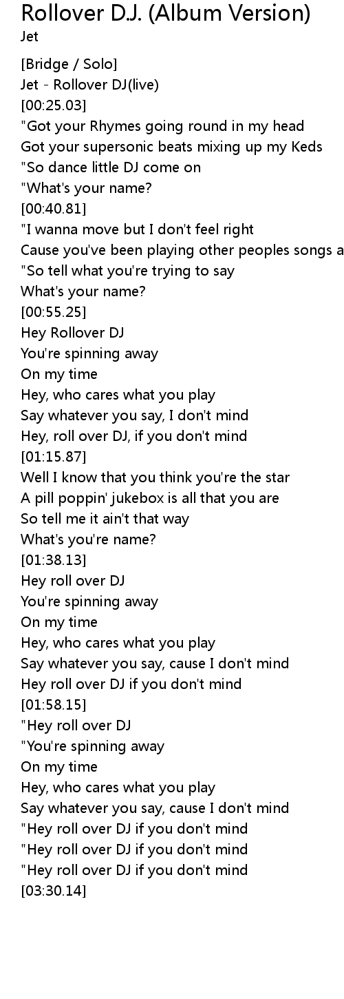 | [03:25.18] | "Hey roll over DJ if you don't mind |