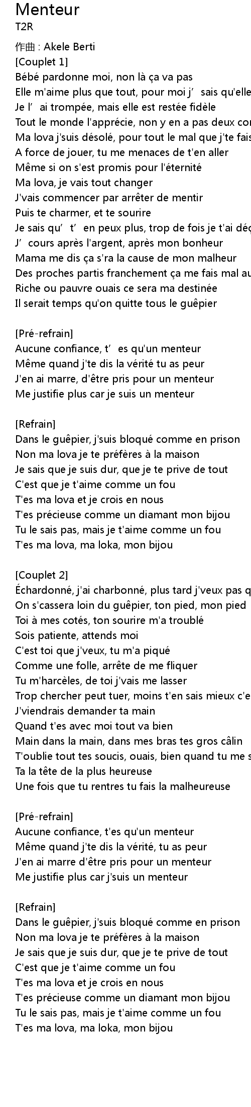 | Me justifie plus car j' suis un menteur | |