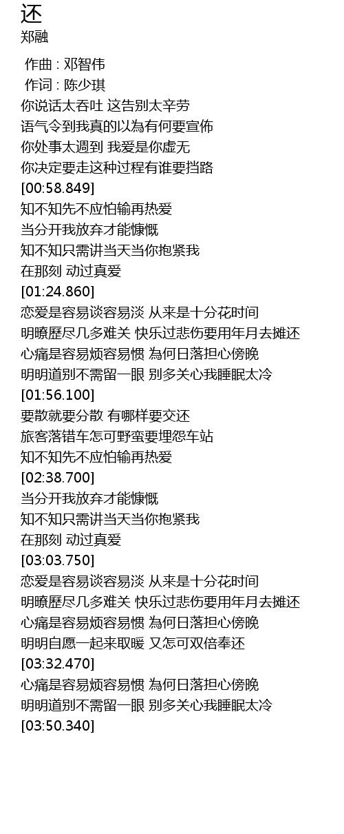 | [03:39.540] | 明明道别不需留一眼 别多关心我睡眠太冷 |