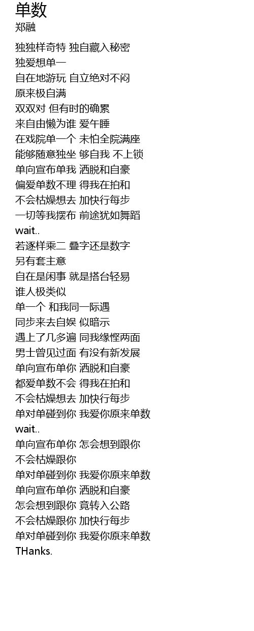 | [00:53.560] | 单向宣布单我 洒脱和自豪 |