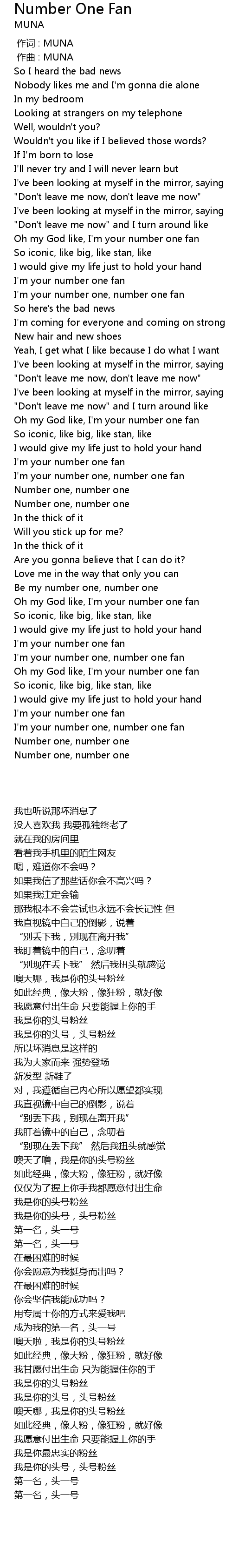 | [02:32.65] | 噢天啦,我是你的头号粉丝 |