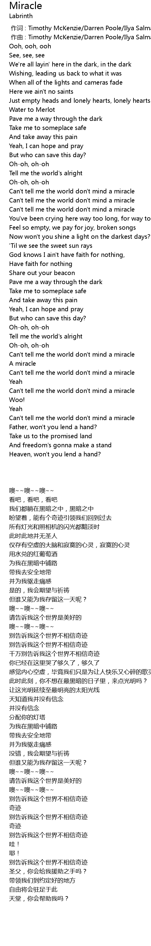 | [02:38.93] | Can't tell me the world don't mind a miracle |