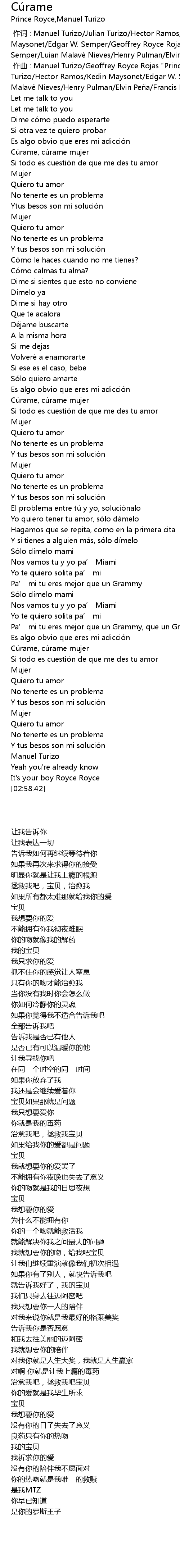 | [00:01.000] | zuo qu : Manuel Turizo Geoffrey Royce Rojas " Prince Royce" Julian Turizo Hector Ramos Kedin Maysonet Edgar W. Semper Xavier A. Semper Luian Malave Nieves Henry Pulman Elvin Pe a Francis Diaz Juan Medina |