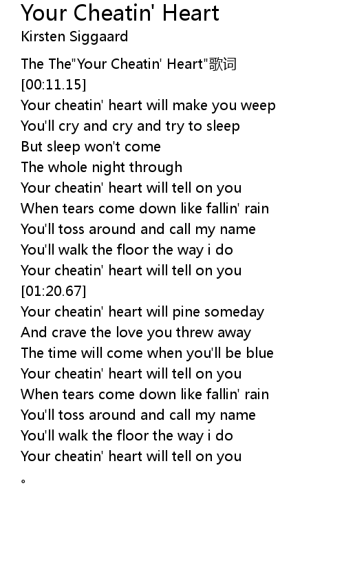 | [02:20.00] | Your cheatin' heart will tell on you |
