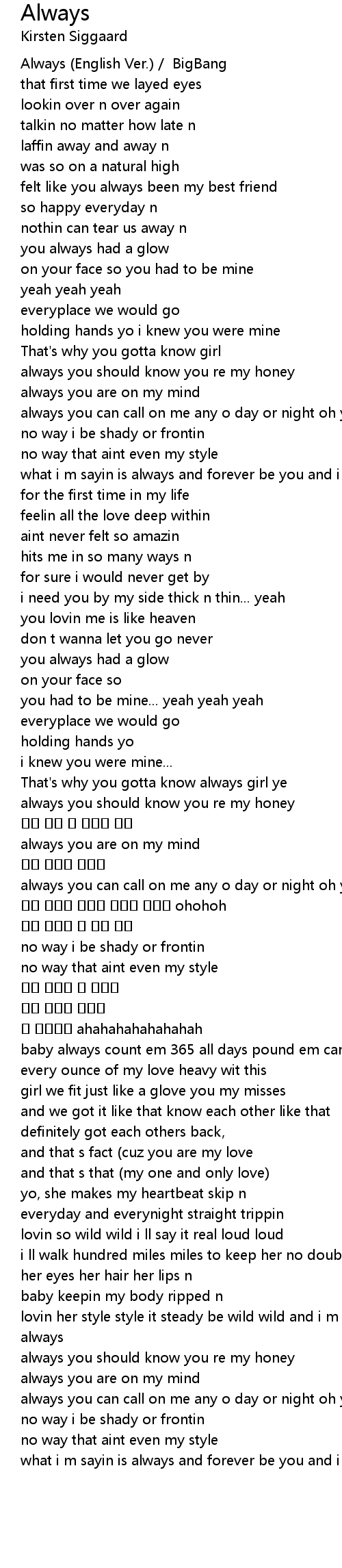 | [00:00.20] | Always (English Ver.) / BigBang |