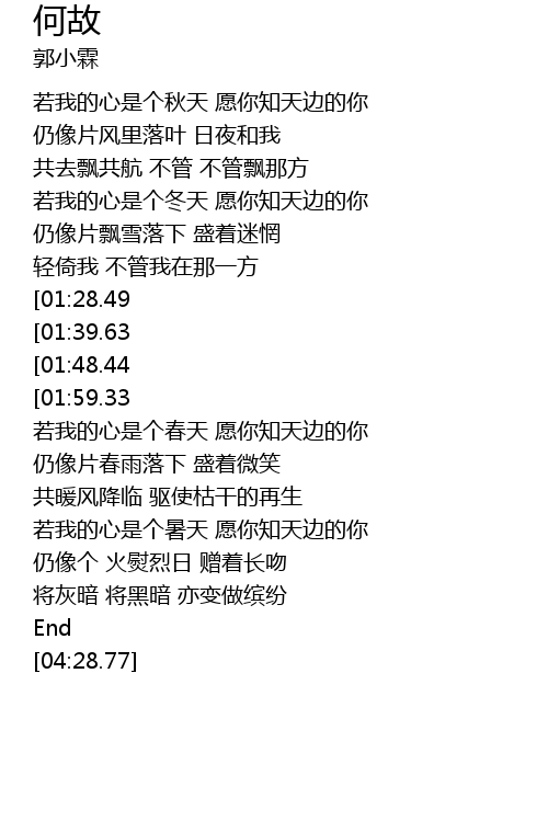 | [00:26.38] | 若我的心是个秋天 愿你知天边的你 |