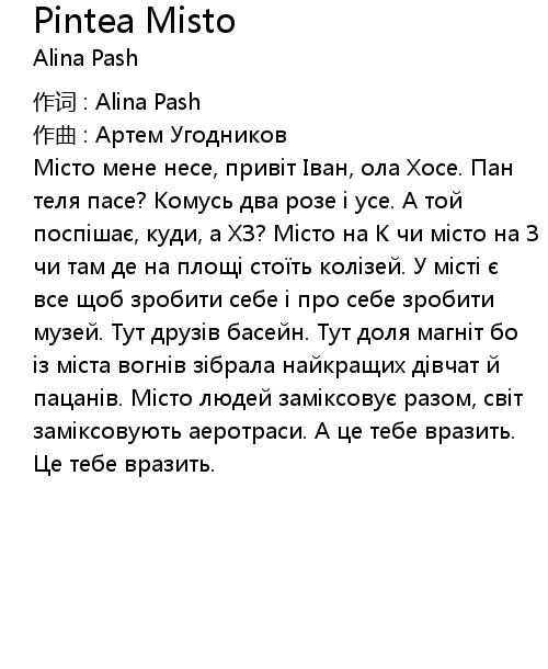 | 作词 : Alina Pash | |