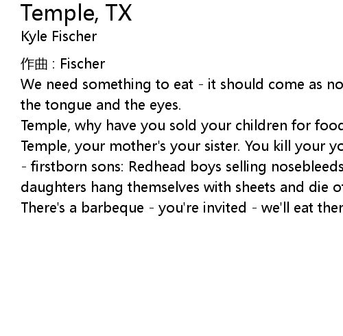 | 歌曲 | Temple, TX |