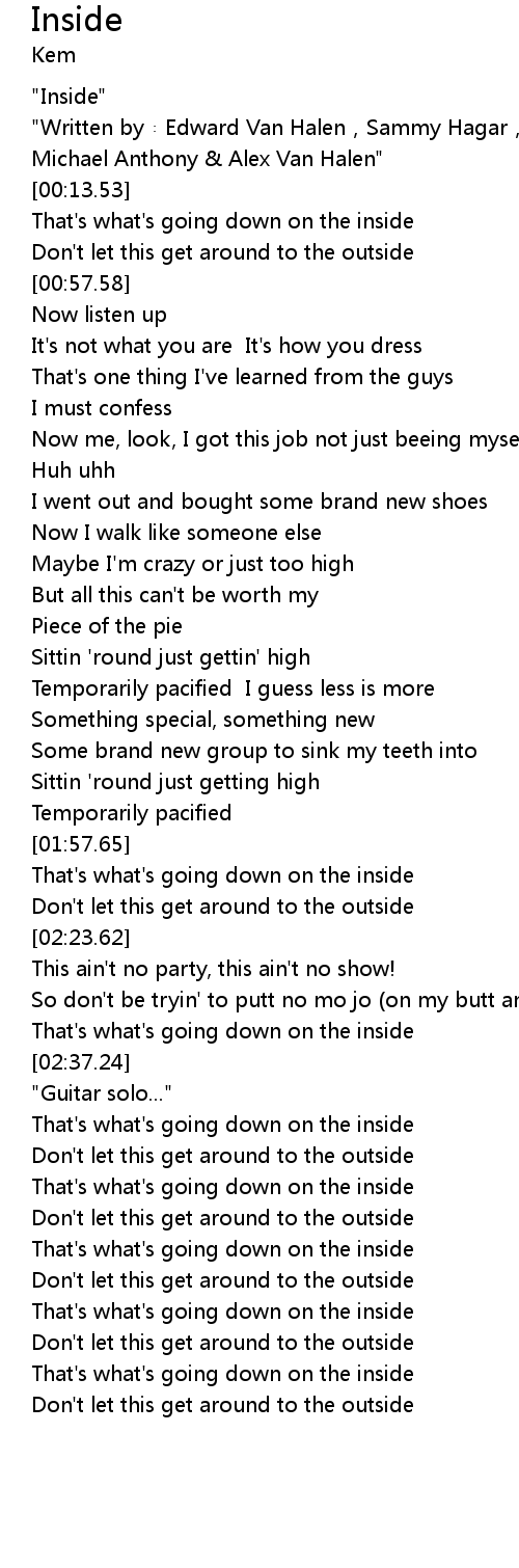 | [00:09.28] | Michael Anthony & Alex Van Halen" |