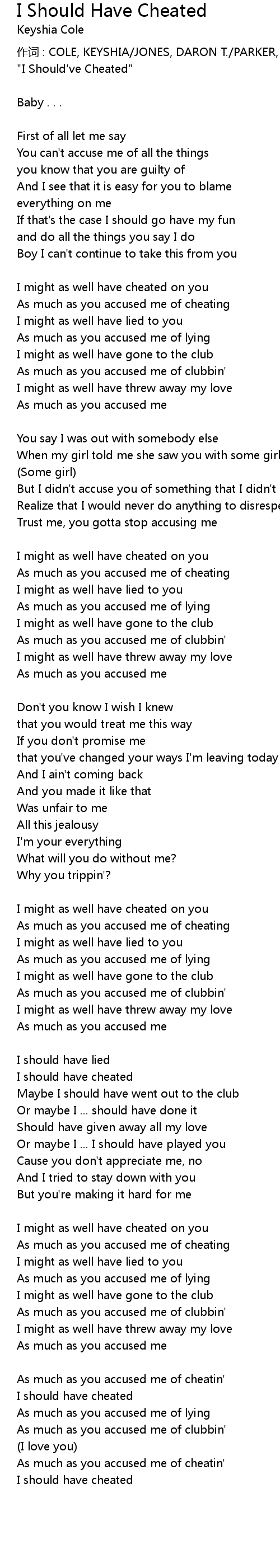 | 歌曲 | I Should Have Cheated |