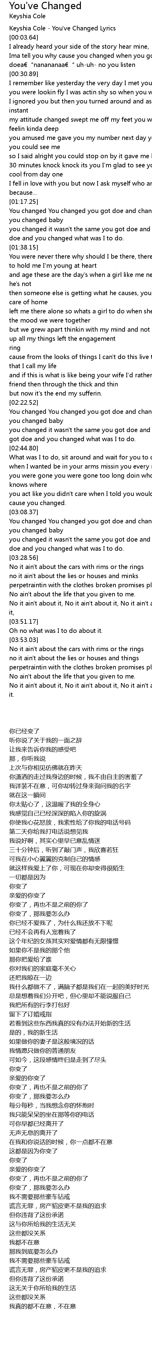 | [00:00.79] | Keyshia Cole - You've Changed Lyrics |