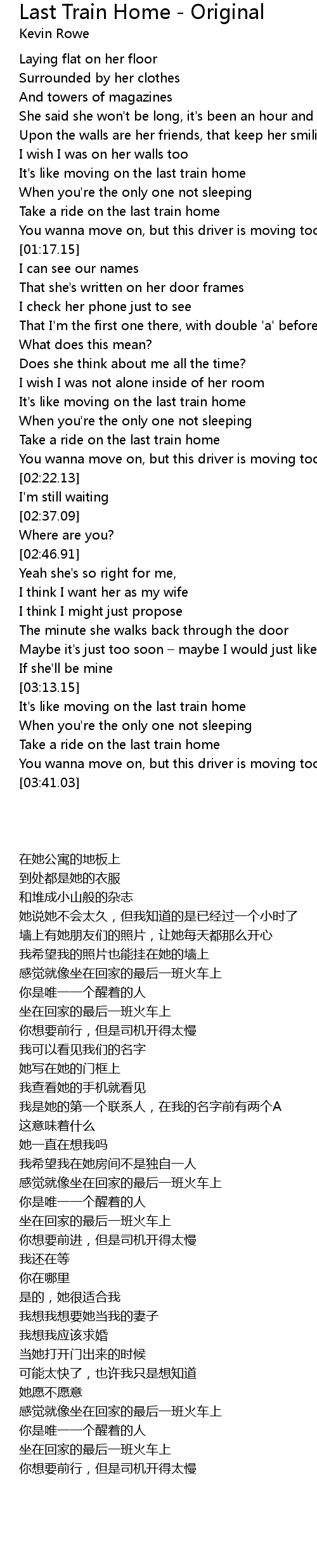 | 歌曲 | Last Train Home - Original |