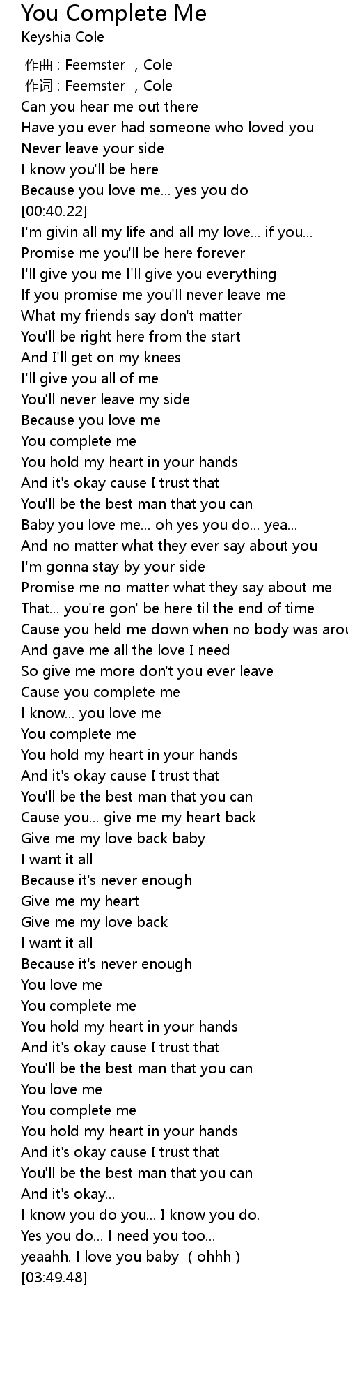 | [02:53.75] | You complete me |