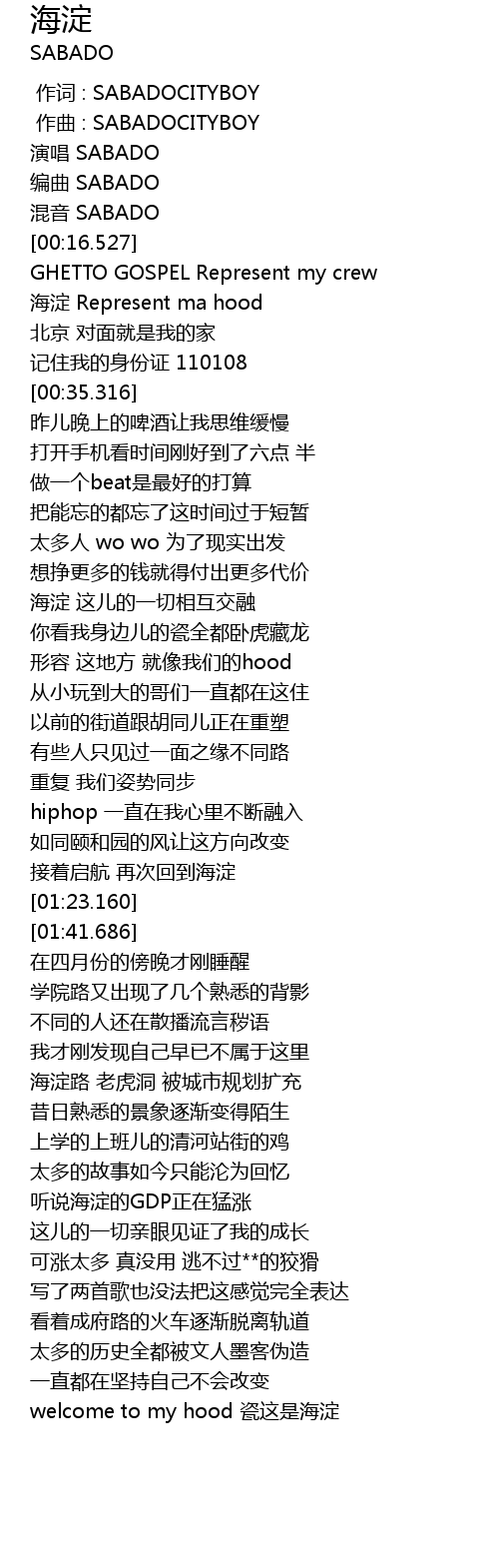 | [02:29.273] | welcome to my hood 瓷这是海淀 |