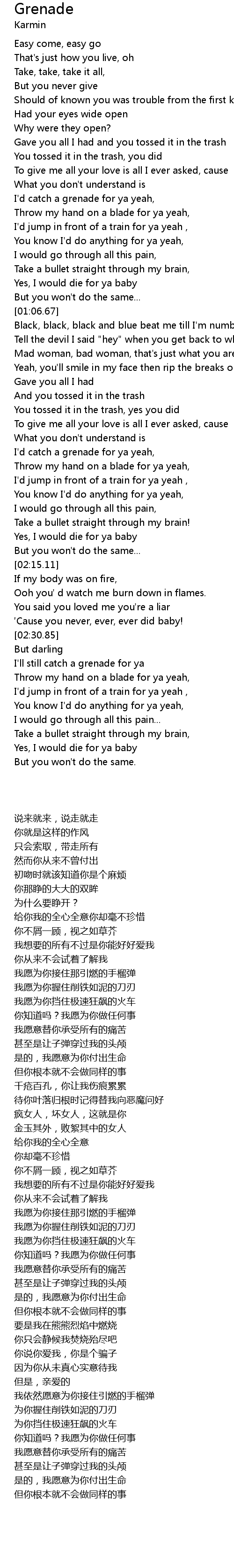 | [02:38.17] | 我依然愿意为你接住引燃的手榴弹 |