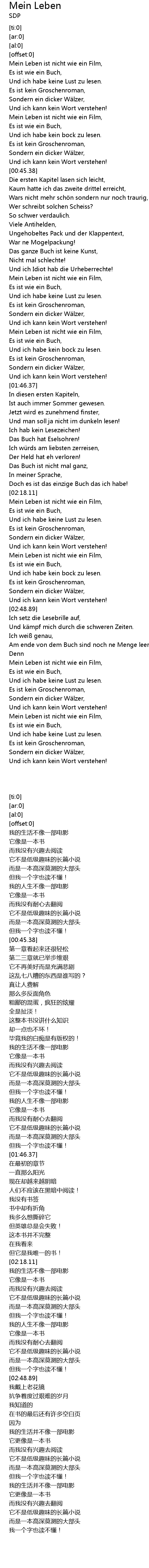| [02:23.31] | Und ich habe keine Lust zu lesen. |