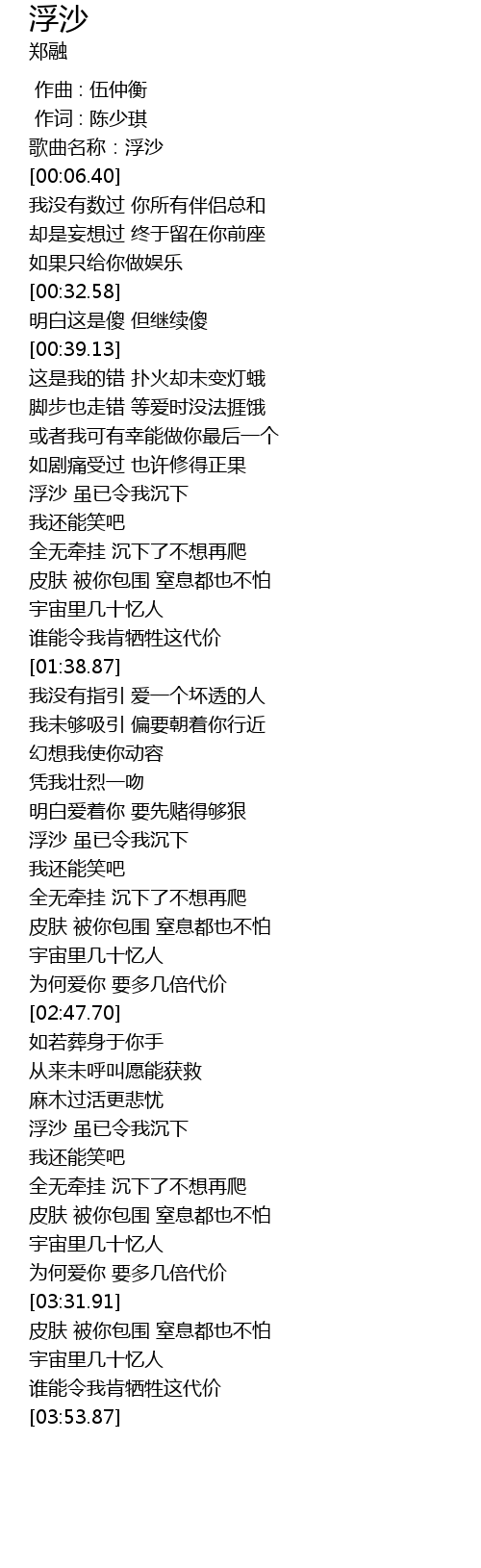 | [03:01.06] | 浮沙 虽已令我沉下 |