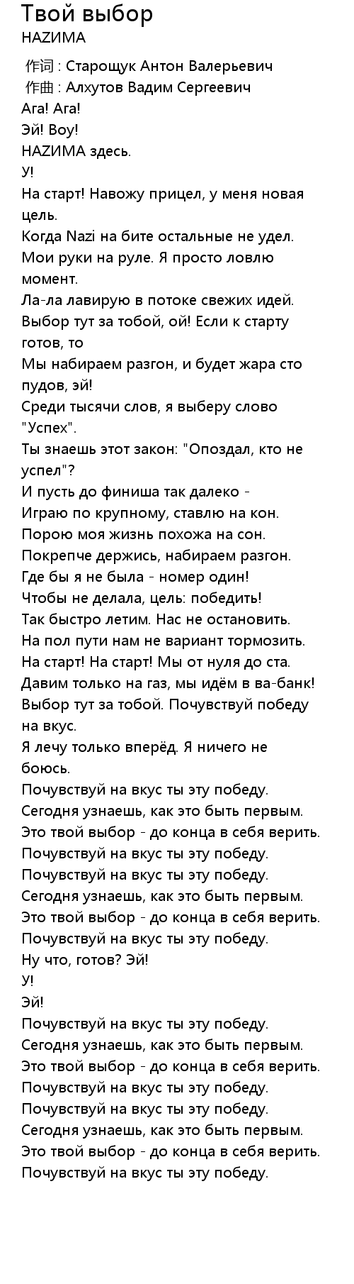 Твой выбор 歌词