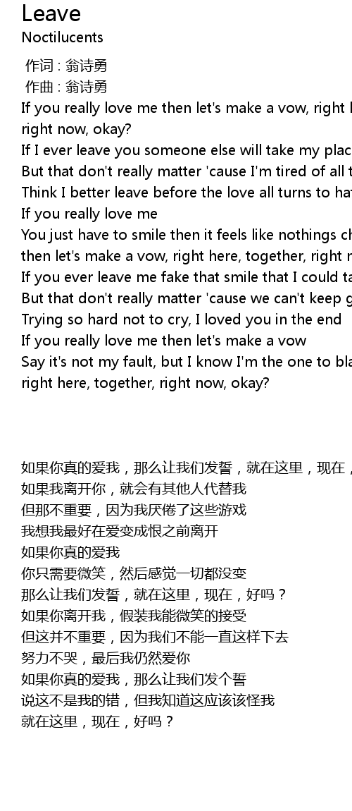 | [00:09.40] | 如果你真的爱我,那么让我们发誓,就在这里,现在,好吗? |