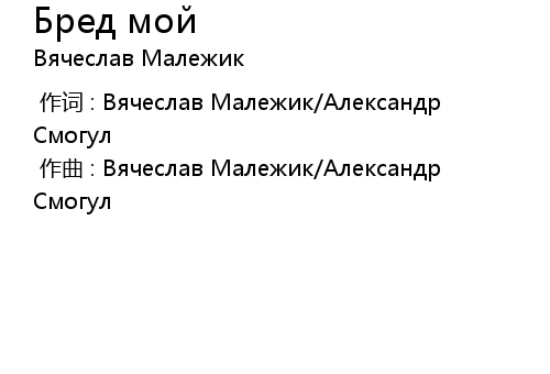 Бред мой 歌词