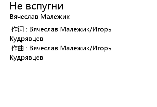 作曲 : Вячеслав Малежик/Игорь Кудрявцев