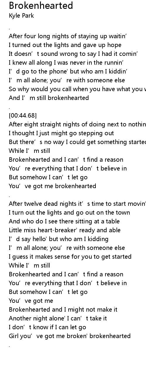 | [02:38.48] | Girl you’ve got me broken' brokenhearted |